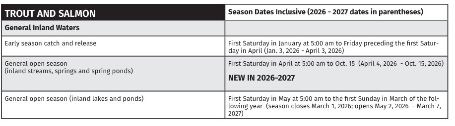 In Wisconsin, the General open season for trout (inland streams, springs and spring ponds) now begins on the first Saturday in April at 5:00am (April 4, 2026 – Oct 15, 2026). Fort McCoy streams will be open on the same dates as the Wisconsin inland streams season. This change applies only to streams on Fort McCoy. There are no springs or spring ponds on Fort McCoy.