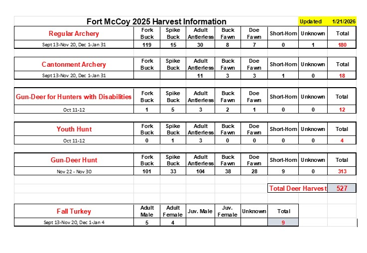 Historic Information on Past Fort McCoy Gun Deer Seasons: